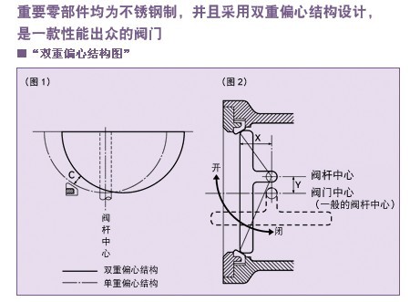 | ■可确保在高流速环境下也不会损伤阀座的“双重偏心结构” 由于采用了阀杆中心与阀座环中心呈偏心(Xmm)状态、且阀门中心与阀杆中心呈偏心(Ymm)状态的“双重偏心结构”,因此当阀门全开时,阀座环与阀芯之间会产生 Cmm 的间隔。(图 1)因此,即使在高流速环境下,也不会因阀芯微震等原因而造成阀座环发生局部磨损。 ■开闭扭矩小 如图 2 所示,阀芯与密封接触面呈全面底座接触状态,这样不仅可以改善密封性,而且无需施加不必要的压接力,因此开闭扭矩小,且操作简便。 ■阀座环使用寿命长 本产品将经久耐用且摩擦系数小的氟树脂(PTFE)用作阀座材料。除此之外,还采用了具有“密封面压力全面均匀”及“压接力适当”等优点的双重偏心结构设计,确保阀座环不会发生龟裂、剥落或局部磨损,因此经久耐用。 ■可以拧紧填料压盖 在拧紧填料压盖时,普通的蝶阀必须先将拉杆或齿轮驱动部拆下。本产品的主体上部与拉杆或齿轮驱动部之间留有空间,可以直接将螺丝扳手放在填料压盖螺栓上(图 3),因此可以快速地拧紧填料压盖。 |