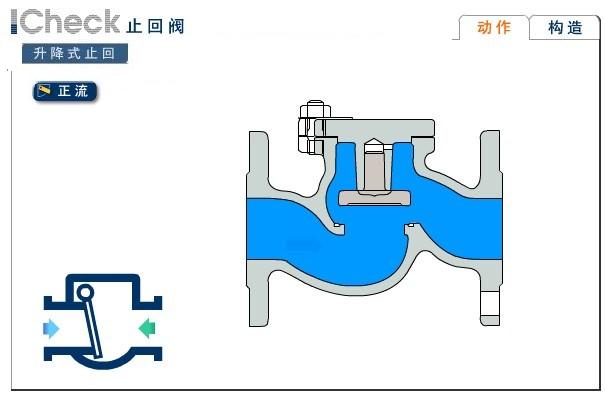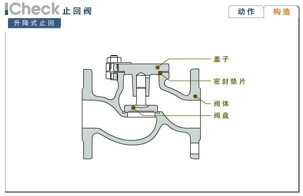 2:升降式止回阀是属于将截止阀上的阀杆、手柄、其它开闭操作部分卸下,加盖后形成的构造。流体阻抗较大,主要是较小口径的产品。