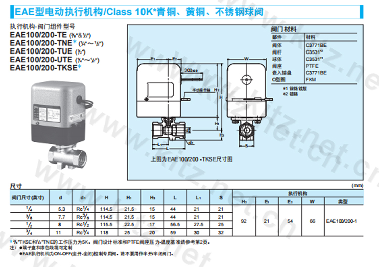 日本KITZ电动阀- EAE200-UTE规格:8-15mm1/4-1/2 inch