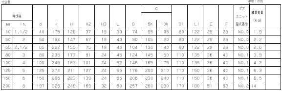 G-16DJU蜗轮蝶阀外型尺寸及重量(规格40-200mm):