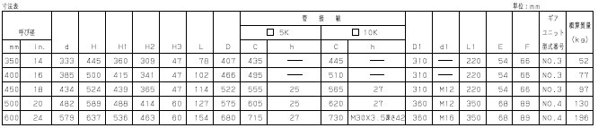 KITZ蜗轮蝶阀G-16DJU规格及重量(350-600mm):