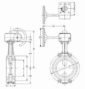 口径 d H H1 H2 H3 L D C D1 L1 E F Gear type