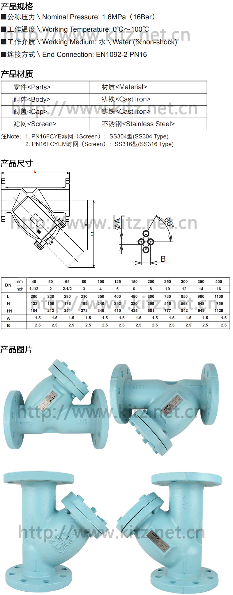 10FCY KITZ过滤器 北泽法兰过滤器 KITZ铸铁过滤器