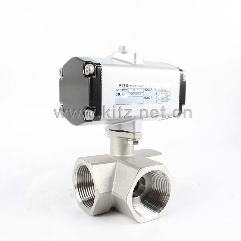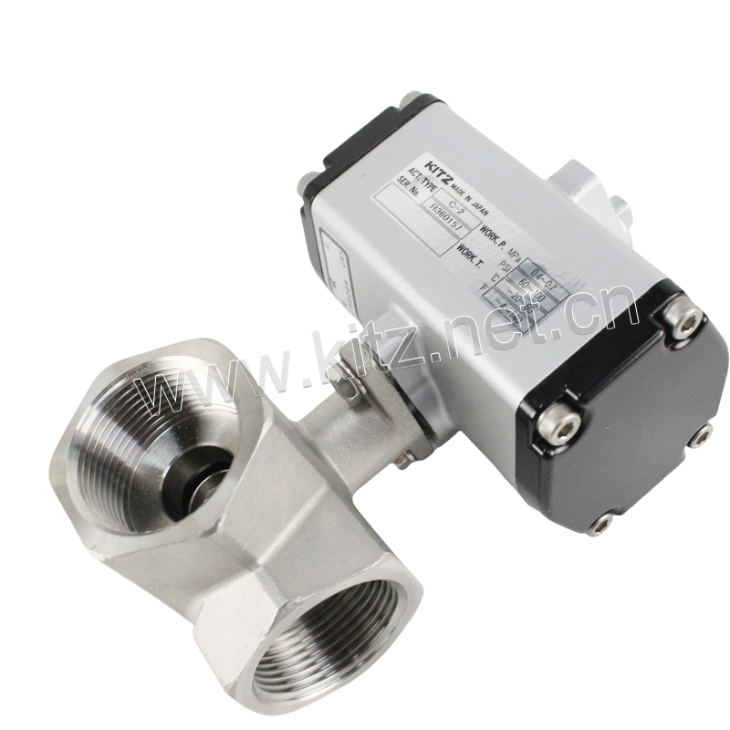 C-UTNE气动三通不锈钢球阀是日本KITZ北泽设计生产的一款气动三通阀,执行器材质铝合金具小巧轻便,结构简单故障少,可以直接安装专用电磁阀,旋转角度90度,快速安装的特点。