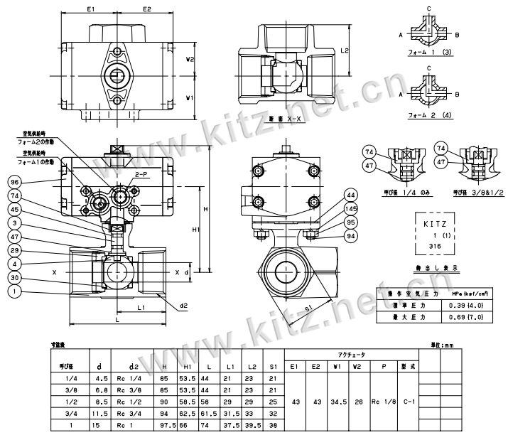 北泽C-10UTWE气动球阀日本KITZ进口气控阀6分现货