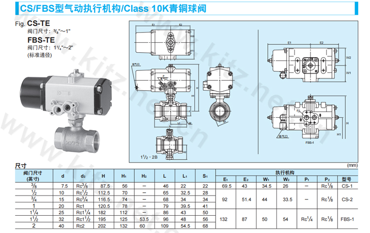 产品名称:CS-TE KITZ气动丝扣青铜球阀产品型号:CS-TE使用压力:1.0MPa适用介质:压力变动小的水、油、气体(W.O.G.)名称:青铜丝扣缩口径球心阀 压力等级:10K KITZ代号:CS-TE : 材质:阀体:青铜 阀盖:黄铜 阀 杆:K合金 球 心: 黄铜 阀 座: PTFE+NBR C