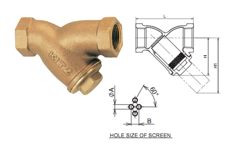 日本KITZ北泽PN16YE 青铜丝扣Y型过滤器