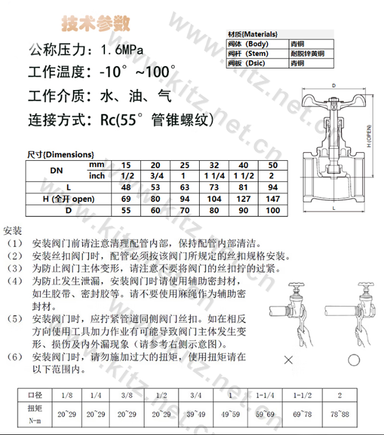 C KITZ截止阀 北泽青铜丝扣截止阀
