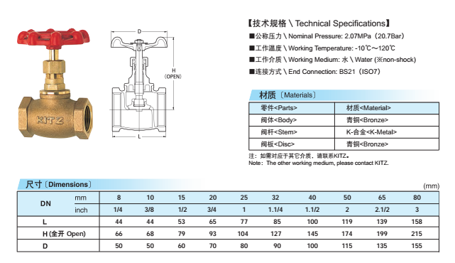 C 截止阀日本北泽KITZ,用于工业、酒店、工厂、医院管道安装,适用于自来水、油、气, 节能环保使用寿命长,免维护。 C截止阀结构尺寸图; C截止阀图片
