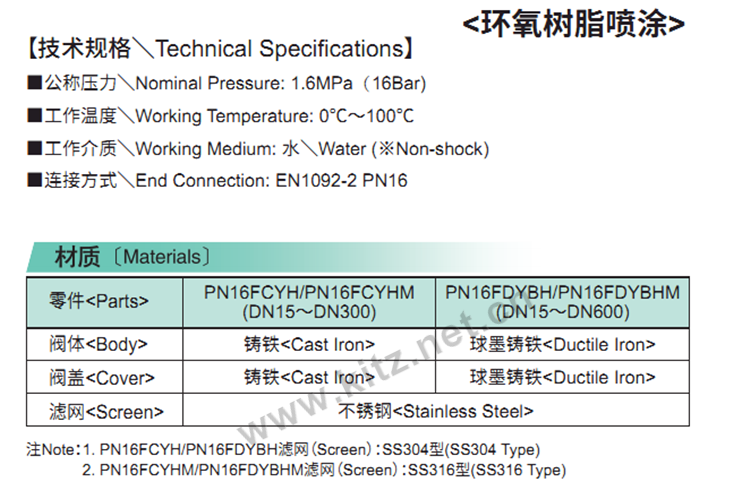 日本KITZ北泽法兰过滤器PN16FDYBH DN50-600球墨铸铁过滤器kitz过滤器北泽过滤器开兹过滤器 铸铁/球墨铸铁法兰Y型过滤器(环氧树脂喷涂) 技术规格公称压力: 1.6MPa 工作温度: 0℃~100℃ 工作介质: 水 连接方式:EN1092-2 PN16