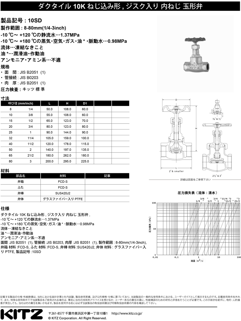 日本KITZ10SD 球墨铸铁蒸汽截止阀产品与尺寸图...